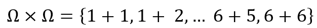 ΩXΩ = {2, 3, 4, 5, 6, 7, 8, 9, 10, 11, 12}, pero los elementos del espacio muestral no están dotados de la misma probabilidad de salir en un lanzamiento de los dos dados.