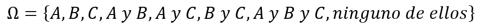Ciertamente podría definir un espacio muestral en las cotizaciones para un hecho de los varios y diversos que hay. Supongamos que ante un hecho la cotización pueda marcar máximos relativos en A y/o en B y/o en C y/o en ninguno de ellos. Tendríamos el siguiente espacio muestral para el siguiente suceso tras el hecho acaecido en la cotización:
