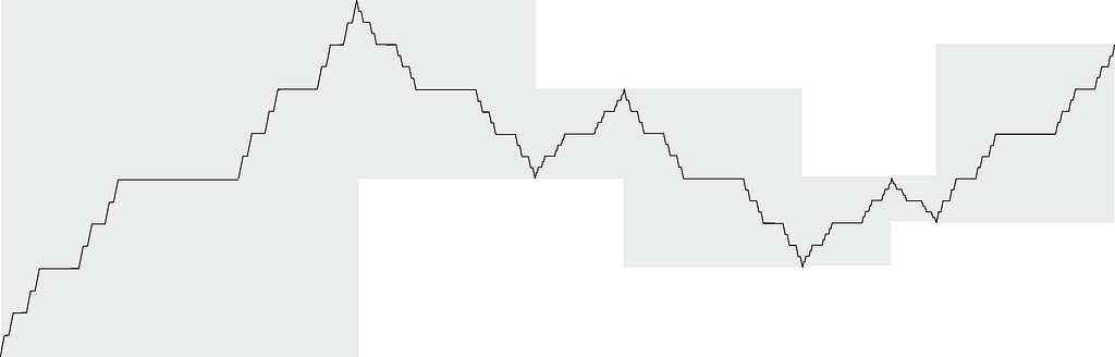 La función de Cantor o escalera del diablo es uno de los fractales cuya dimensión topológica y de Hausdorff-Besicovitch son iguales a 1. En cierto modo, tiene algo de semblanza a un gráfico de una cotización solo alcista.