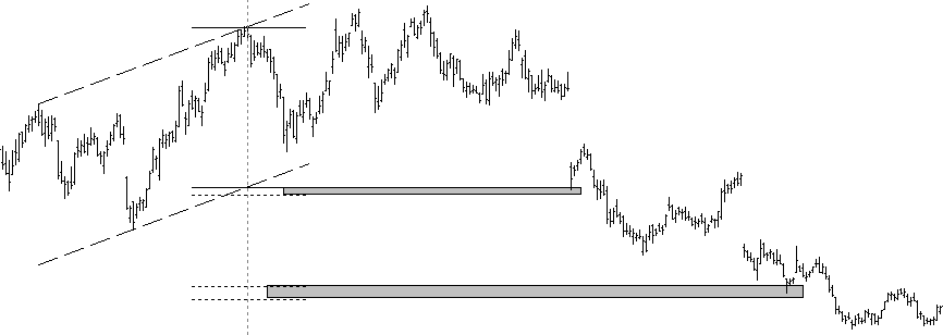 Dos distancias en precio que se han replicado en la misma cotización, la primera a una contradirectriz y la segunda a una directriz. En el segundo caso se formó un canal.
