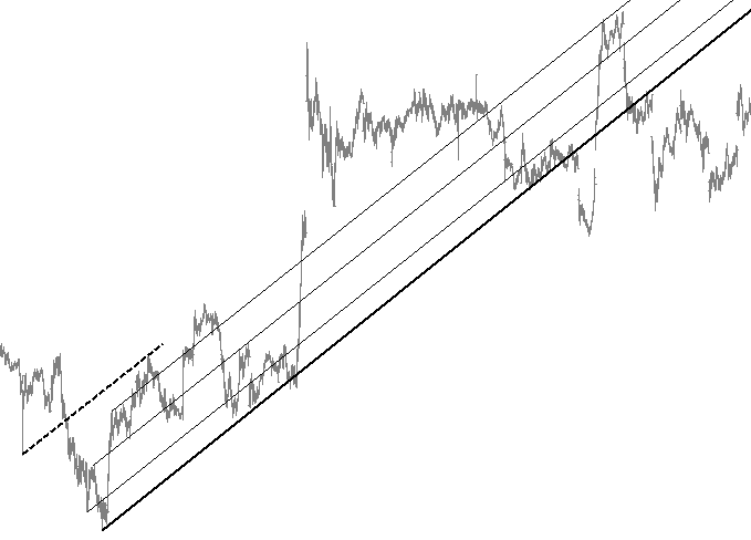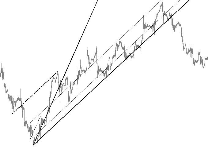 Cada vez que nos encontramos en una cotización ante un máximo o un mínimo relativamente importante, alrededor de él podemos crear una línea a la que la cotización futura tiene tendencia a dirigirse, sirviendo esta tanto como soporte como resistencia y como apoyo y guía de movimiento del precio como si de un tutor de una planta donde se enredan los zarcillos se tratase. A tal línea le llamo línea de indecisión y para su creación intervienen máximos y mínimos anteriores y posteriores al relativamente importante. Las líneas de indecisión tienen paralelas sobre las que las cotizaciones muestran las mis características.