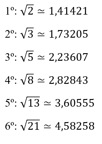 Este tercer conjunto borroso tiene como elementos la raíz cuadrada de números de la secuencia de Fibonacci, concretamente está formado por las raíces cuadradas de 2, 3, 5, 8 ,13 y 21, siendo posible que las raíces de los siguientes coeficientes de la secuencia de Fibonacci formen también parte del conjunto borroso y que determinen posibles homotecias de ciertas distancias.